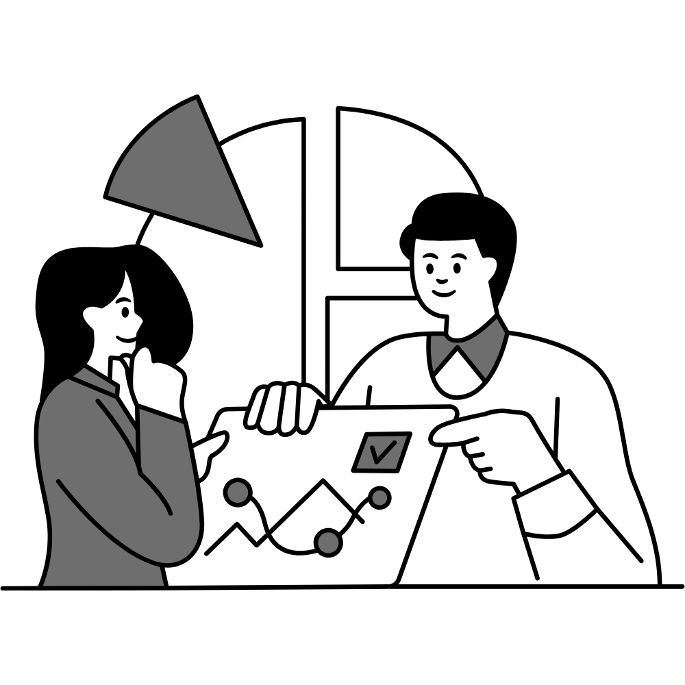 ちえじんはお客さまの成果や満足度を最も大切にします。そのために実際に効率的に経営分析するためのシステム開発や、エンドユーザとの信頼構築のためのアプローチの代行など、目標達成のための幅広い支援を行っています。